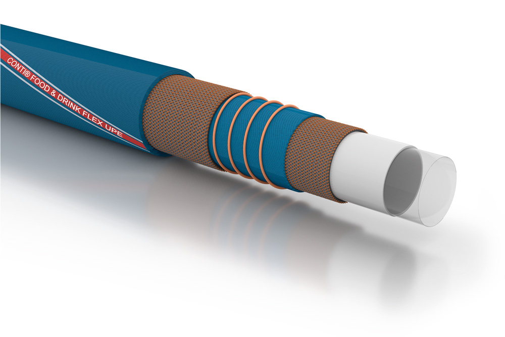 CONTI® FOOD & DRINK FLEX UPE は、食品飲料業界ならびに医薬品・化粧品業界向け高品質製品です。白い超高分子量ポリエチレン(UPE)の内側ライナーは、無孔性で可塑剤を含まず、味や匂いに影響せず、あらゆる一般的な洗浄剤や殺菌剤に対して非常に強い耐性を有しています。このチューブと被覆材は、酸や溶剤などの腐食性化学 物質にも耐性があります。この特殊な構造により、CONTI® FOOD & DRINK FLEX UPEは非常に柔軟かつ軽量で、圧潰耐性があり、取り扱いが容易です。