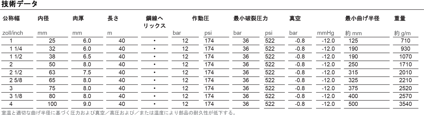 CONTI® FOOD & DRINK FLEX UPE は、食品飲料業界ならびに医薬品・化粧品業界向け高品質製品です。白い超高分子量ポリエチレン(UPE)の内側ライナーは、無孔性で可塑剤を含まず、味や匂いに影響せず、あらゆる一般的な洗浄剤や殺菌剤に対して非常に強い耐性を有しています。このチューブと被覆材は、酸や溶剤などの腐食性化学 物質にも耐性があります。この特殊な構造により、CONTI® FOOD & DRINK FLEX UPEは非常に柔軟かつ軽量で、圧潰耐性があり、取り扱いが容易です。